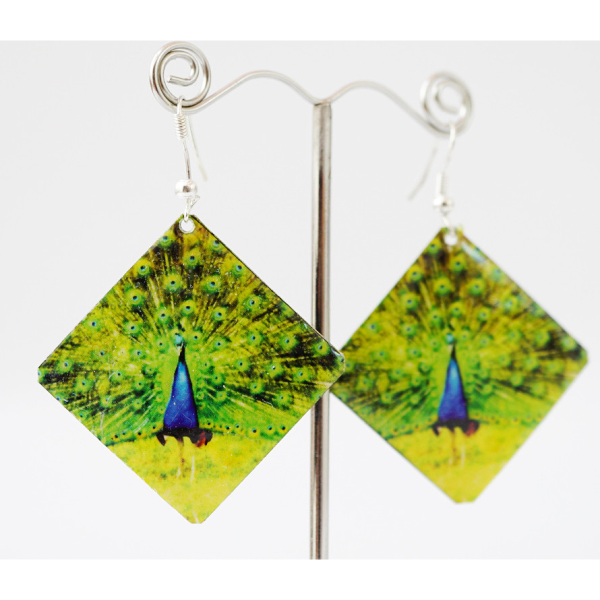 Сережки Хіпі Павич №1 Квадрат