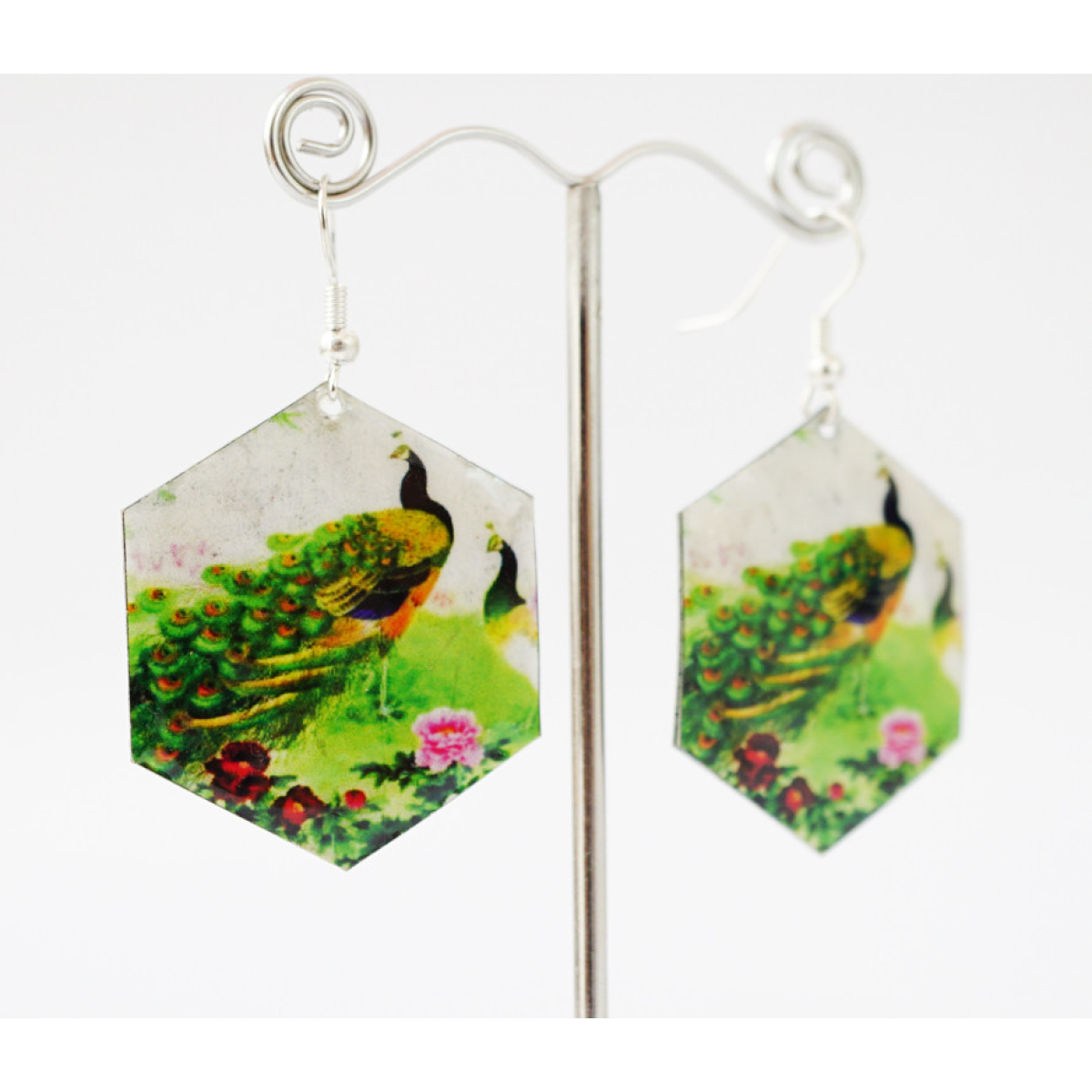Сережки Хіпі Павич №2 Шестигранник