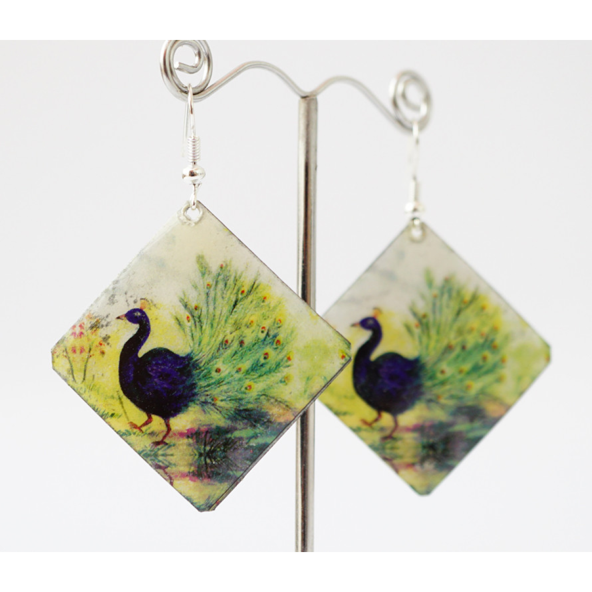 Сережки Хіпі Павич №5 Квадрат