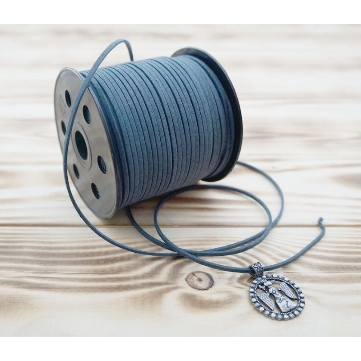 Велюровий шнурок на котушці довжина 90 метрів Сіро синій