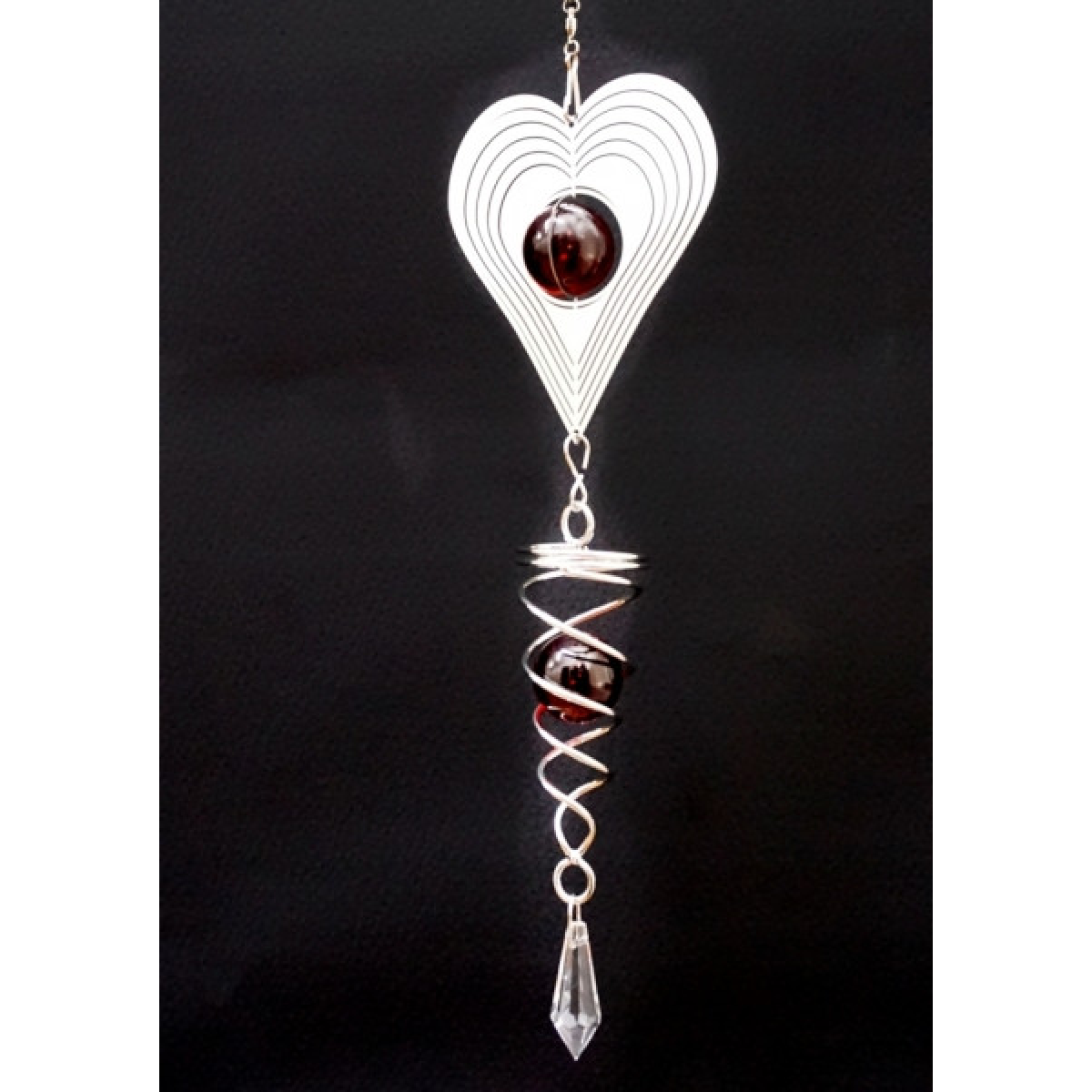3D Мобіль Серце + скляна куля білий метал, підвіска може обертатися