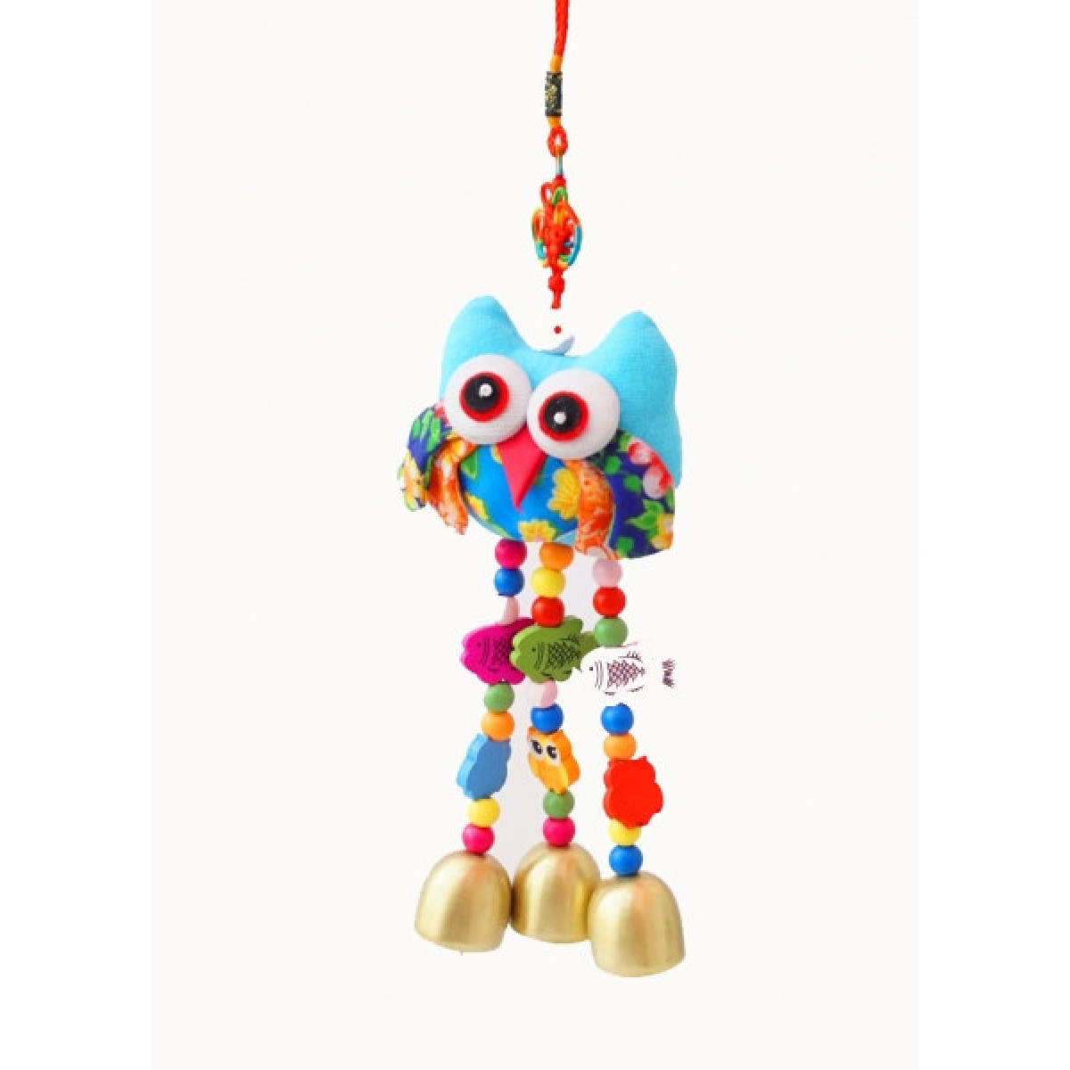 Підвіска з тканини Сова + 3 литі дзвіночки Блакитна