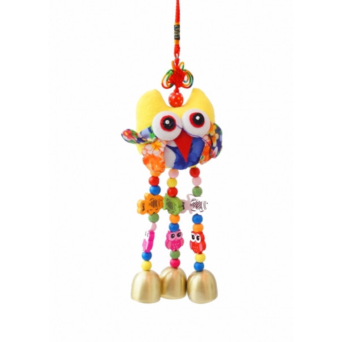 Підвіска з тканини Сова + 3 литі дзвіночки Жовта