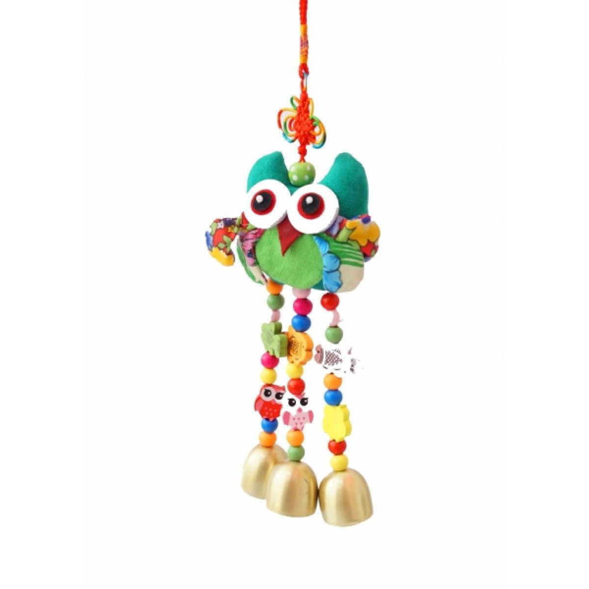 Підвіска з тканини Сова + 3 литі дзвіночки Зелена
