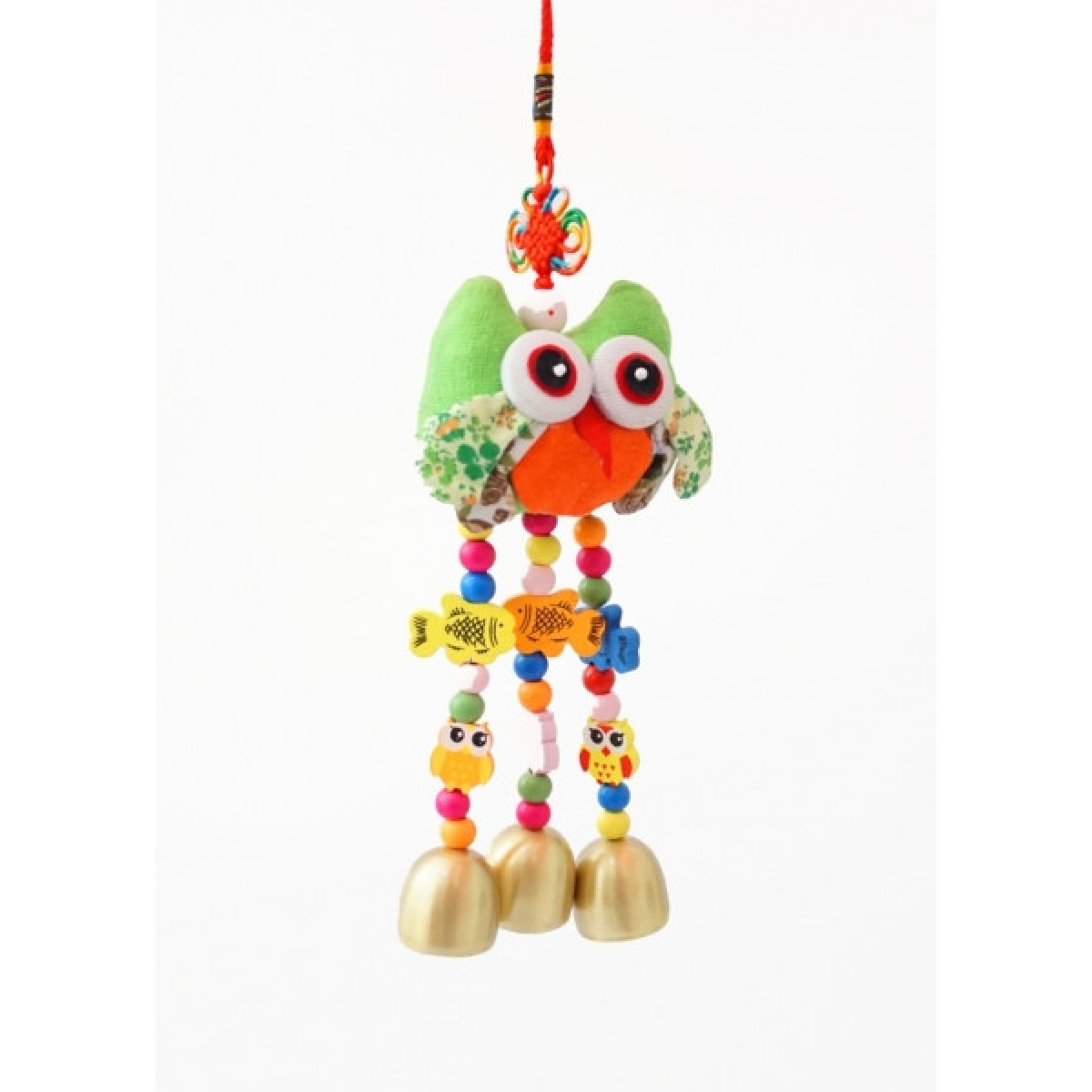 Підвіска з тканини Сова + 3 литі дзвіночки Салатова