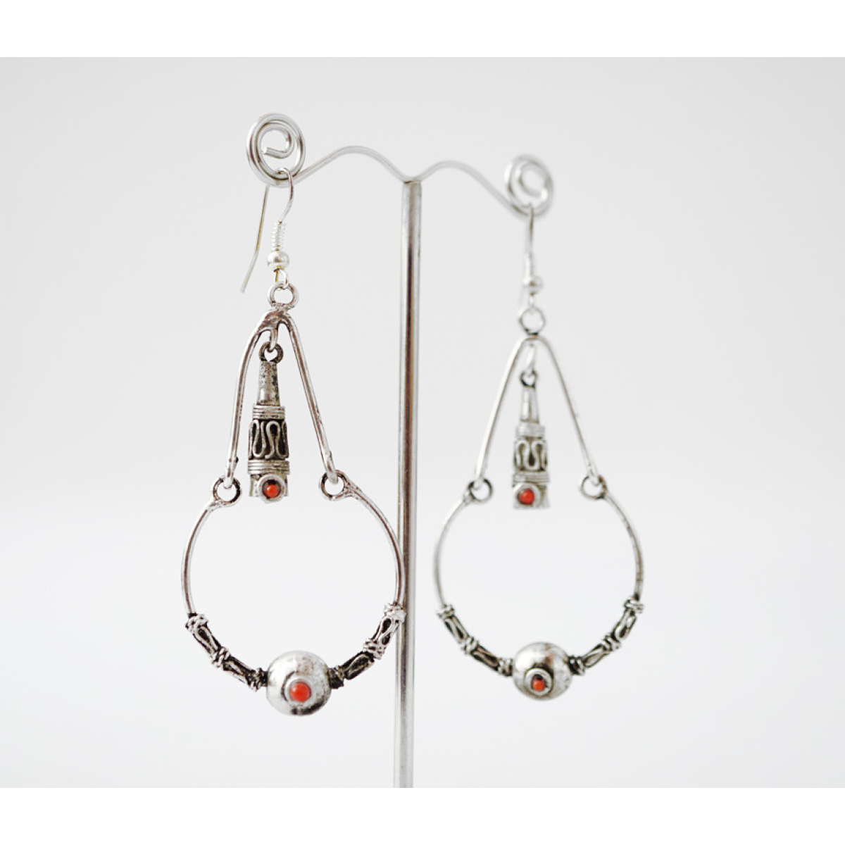 Сережки кільце + трикутник Червона вставка