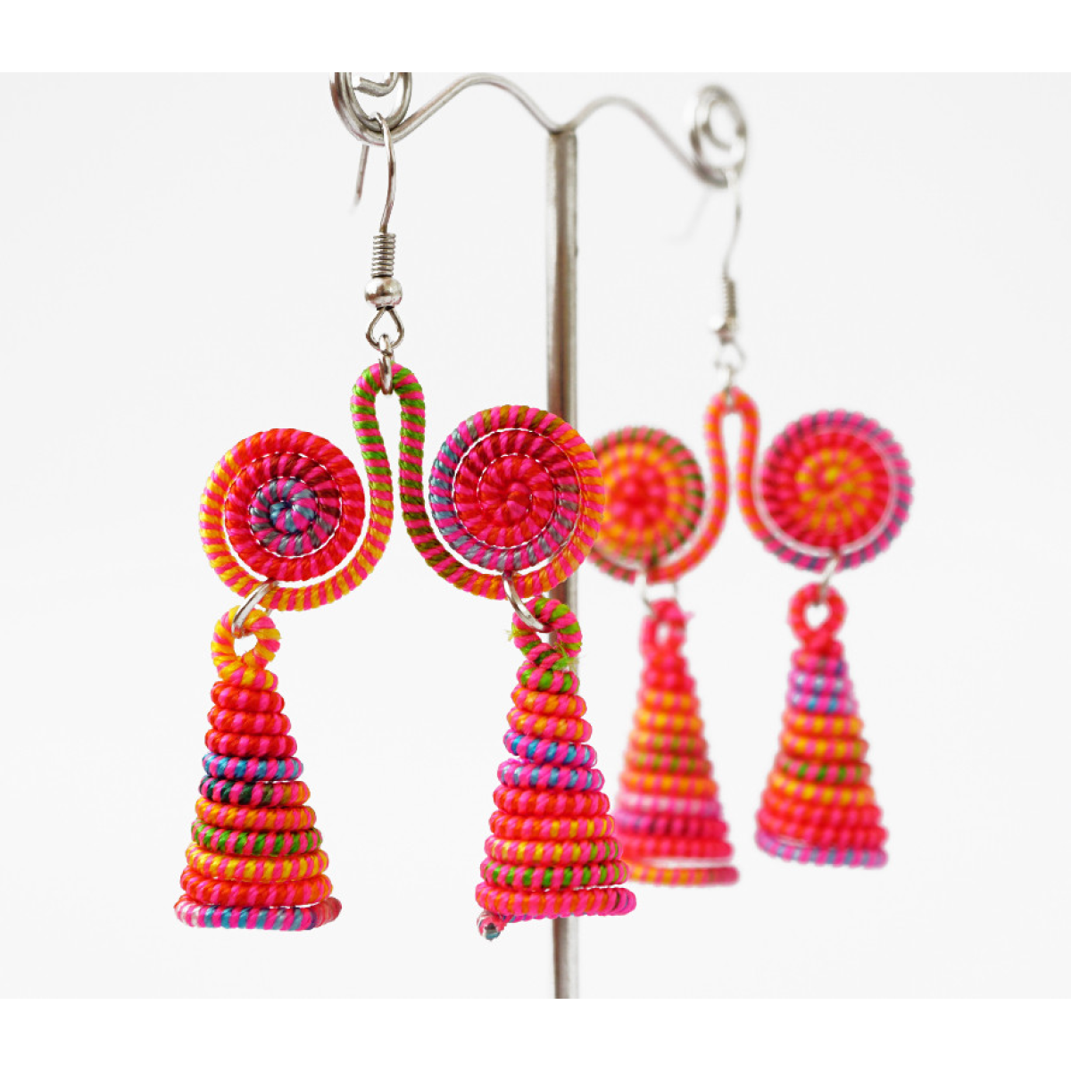 Сережки плетені Подвійні №4 Рожеві