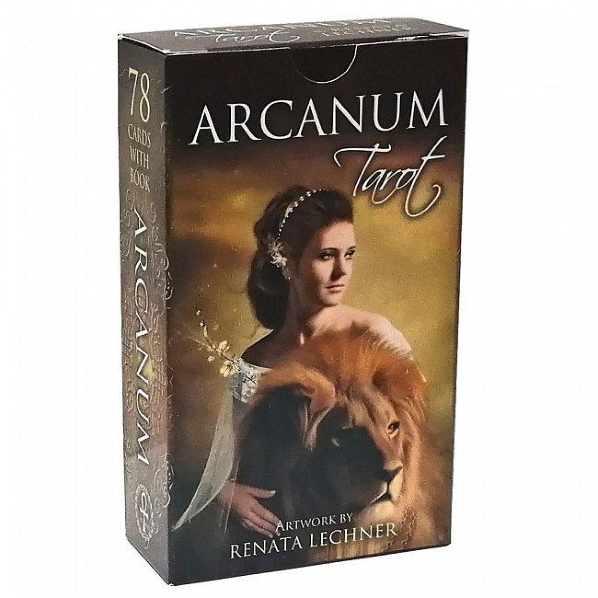 Арканум Таро – новий шедевр від Ренати Лехнер. Позачасне мистецтво прокладає інтуїтивну подорож у зачароване царство, де сучасність та фантазія зливаються воєдино. Це вимір снів та вимір магії: символічний пейзаж, створений архетипами Таро. Всі Аркани, загалом, наслідують традиції Райдера — Уейта, а індивідуальність колоди полягає в якісному цифровому оформленні. Зображення виконані в техніці фотоколажу та комп“ютерної графіки. Кольори відрізняються особливою барвистістю та яскравістю, а персонажі – реалістичністю. Персонажі одягнені в середньовічне вбрання, а в ілюстраціях Молодших арканів чітко простежується зв“язок масті з однією з чотирьох стихій. При цьому, Таро “Арканум“ буде цікавим і професіоналам - авторка зберегла традиційну композицію кожної карти, але привнесла в них індивідуальність, наповнивши арканами ще більшою кількістю символів, ніж міститься на звичних картах Райдера-Вейта. Це дозволить вам з розкладу в розклад відкривати для себе нові значення карт, йдучи за їх таємничими образами в самі глибини світу смислів Таро. Світла колода, що надихає, в якій навіть «проблемні» карти несуть певну частку позитиву. Наприклад, паряча поза Повішеного, оточеного сяйвом, нагадує, швидше, про танцівника, що завмер у балетному па посеред сцени. А на невблаганному мечі Смерті красується чудова квітка. Карти виготовлені із щільного глянсового картону, якісний друк повністю передає глибину кольору, чіткість ліній, об“єм фігур. Таку колоду не хочеться випускати з рук – так зачаровують зображення, які готові відповісти на будь-які запитання.