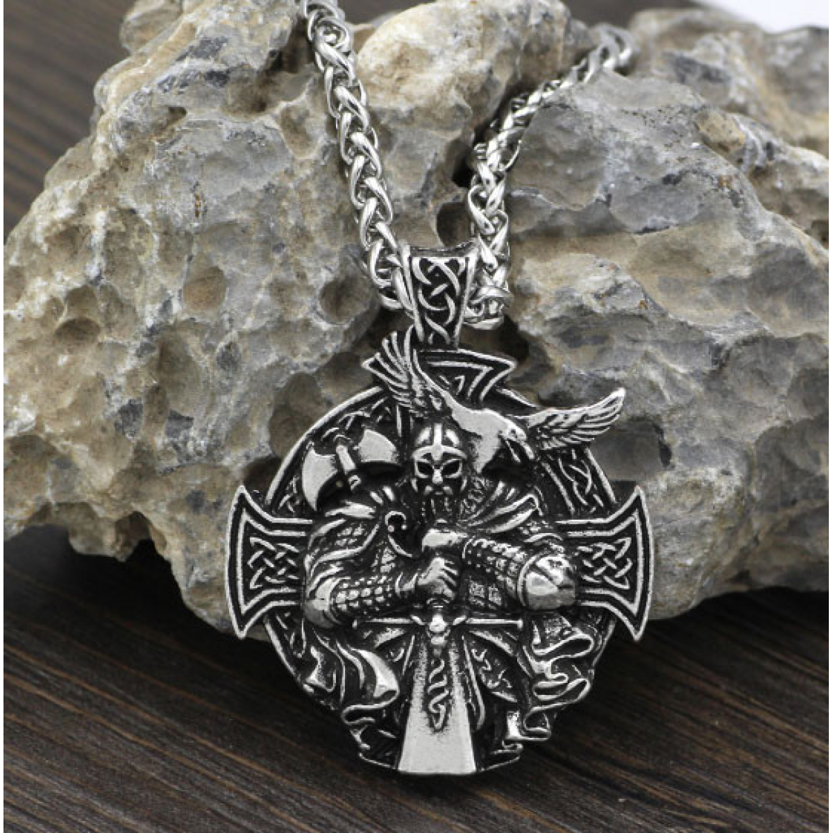 Кулон Перун з мечем білий метал