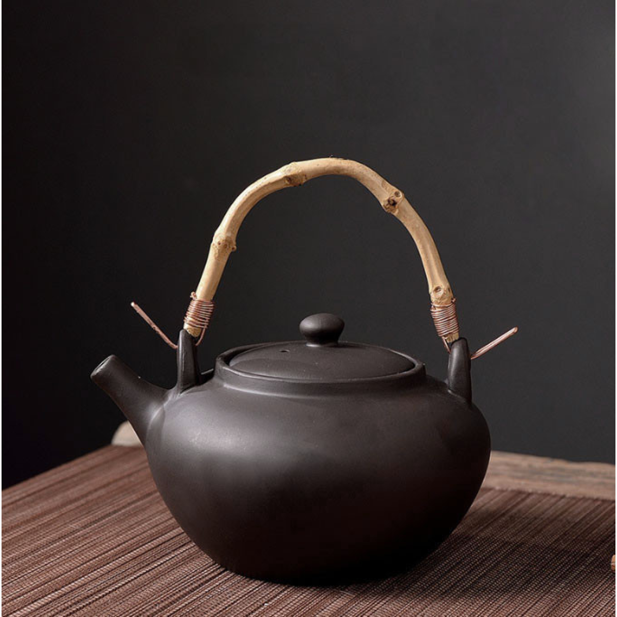 Чайник з бамбуковою ручкою Чорний горщик 500мл.