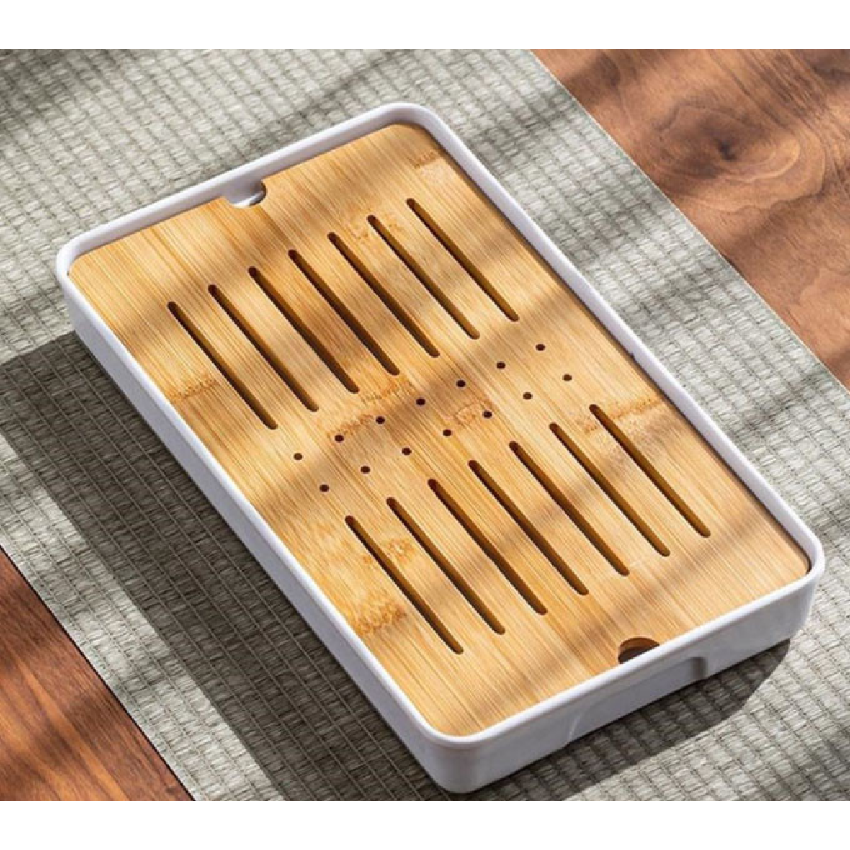 Чабань прямокутний Смужка пластик + бамбук Білий