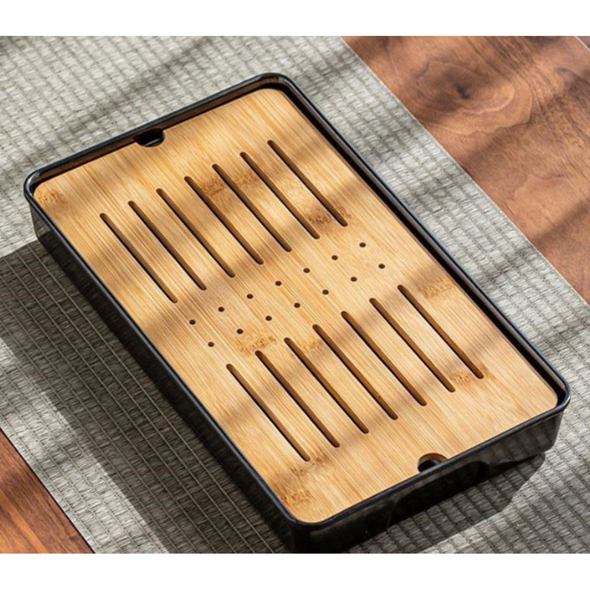Чабань прямокутний Смужка пластик + бамбук Чорний