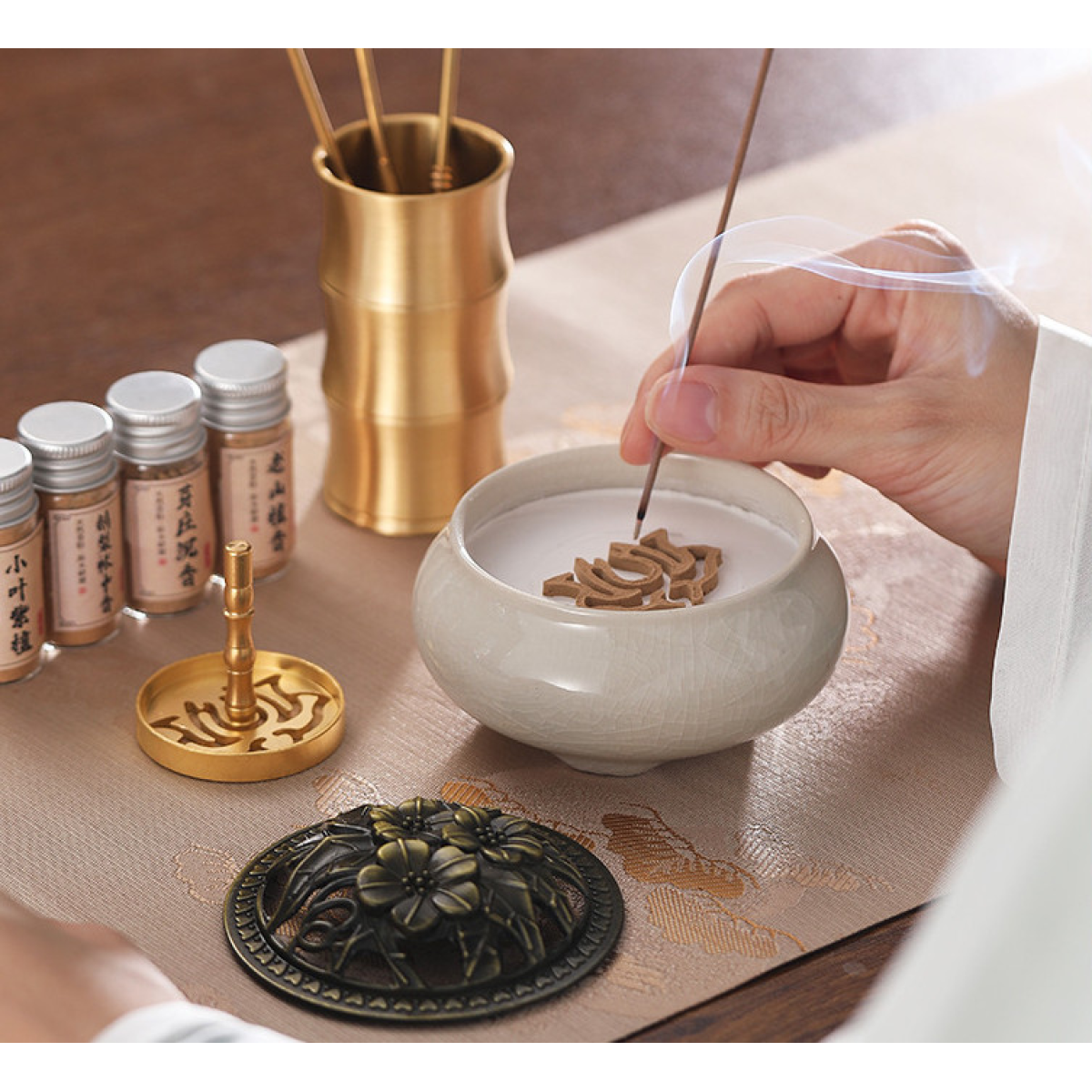 Набір “Сян Дао“ 14 предметів Біла порцелянова курильниця