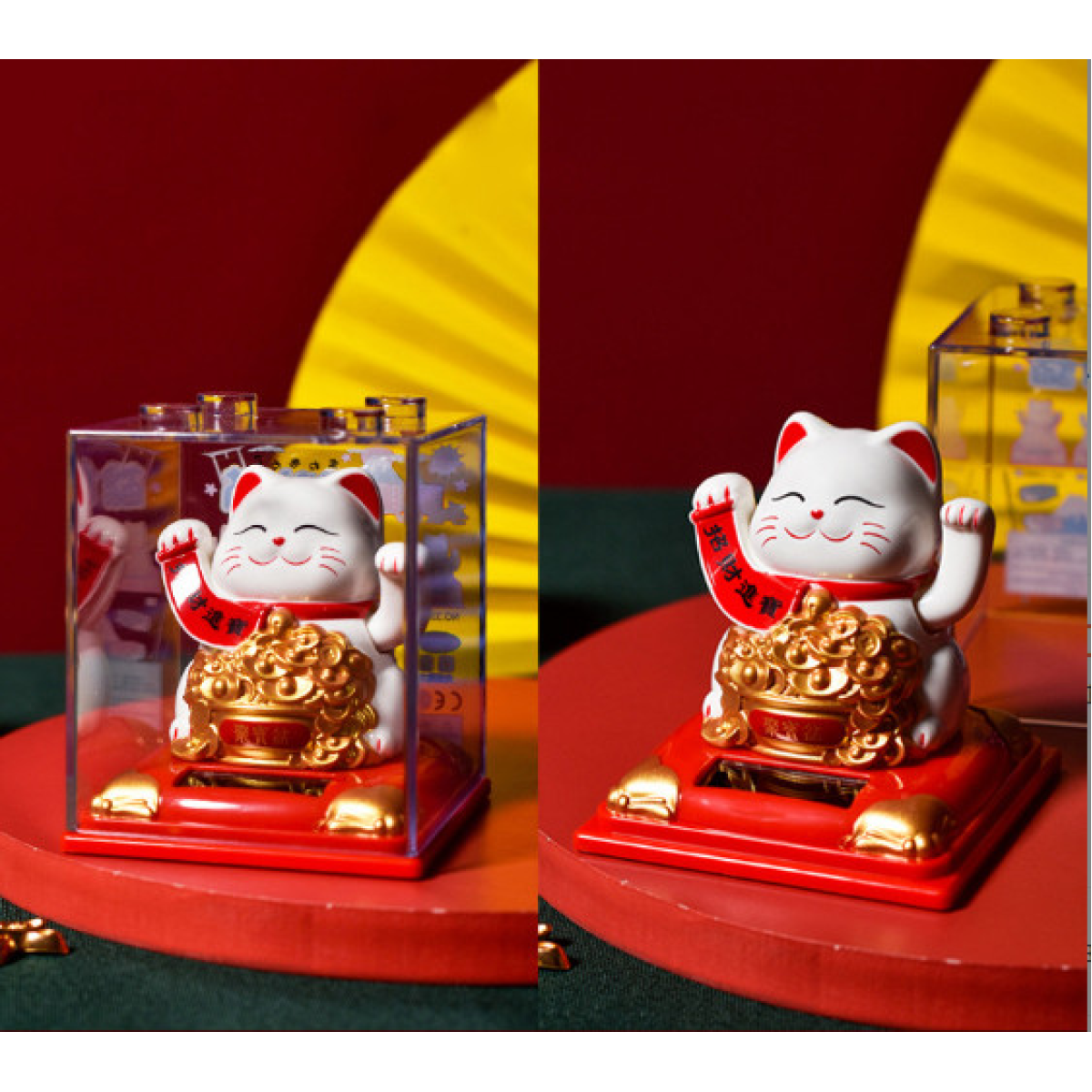 Манекі Неко зі свитком на сонячній батарейці Білий
