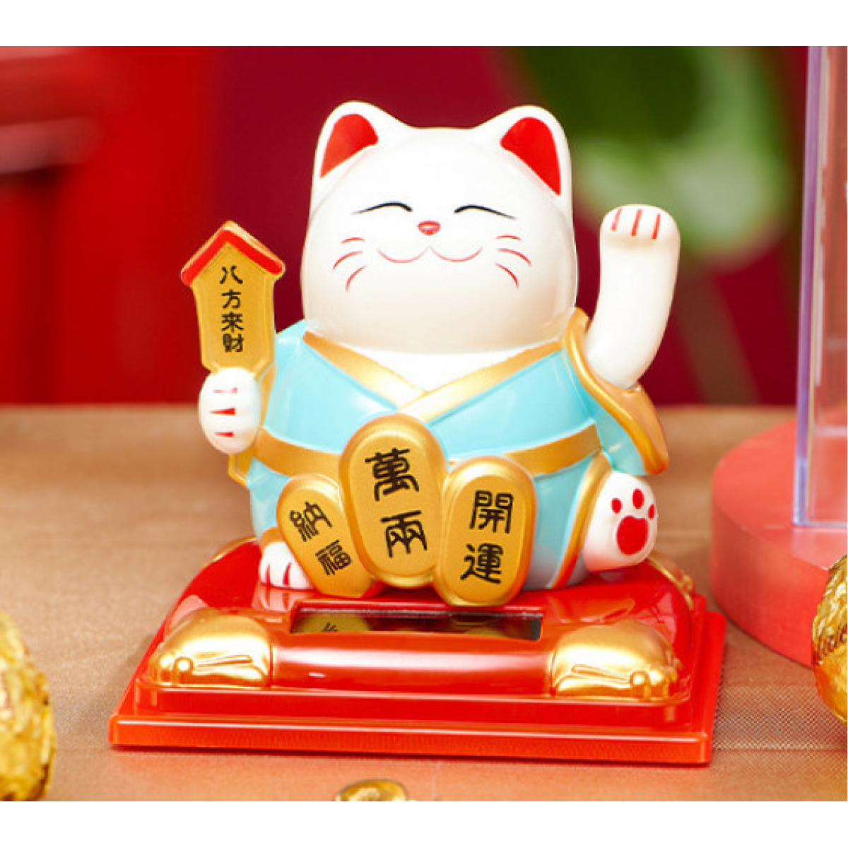 Манекі Неко у кімоно на сонячній батарейці Блакитний