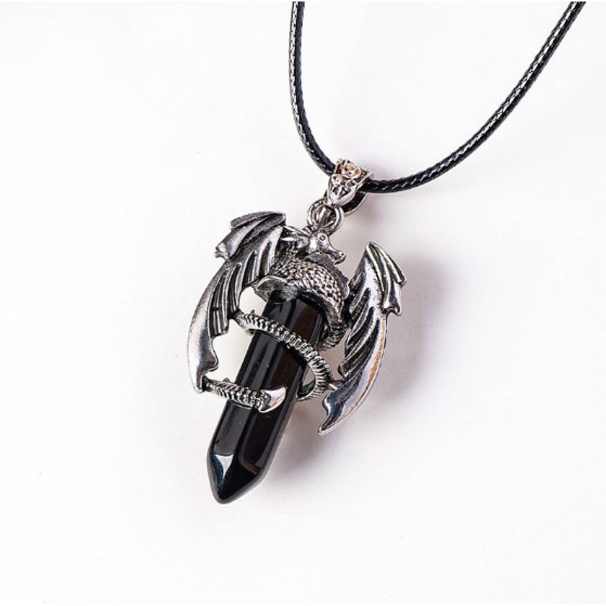 Кулон Кажан вставка Обсидіан