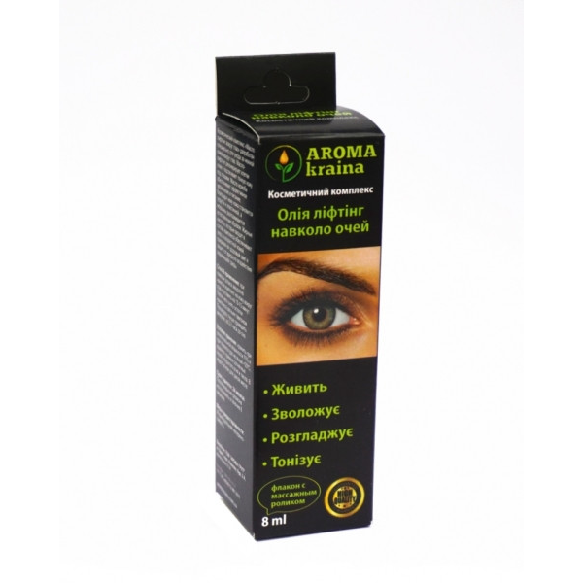 Масло-ліфтинг: Омолоджує, стимулює енергетичний апарат клітини, синтез АТФ і колагену. Підтримує оновлення клітин. Забезпечує ліфтинговий (підтягаючий) ефект Жирні кислоти в складі корисні для всіх типів шкіри, особливий ефект проявляється на зрілої, сухої, жорсткої і чутливій шкірі. Позбавляє від набряклості, млявості, почервоніння і роздратування, вирівнює дрібні зморшки і лінії навколо очей, усуває ефект «гусячих лапок» Нормалізує секреторні функції шкіри, відновлює захисну мантію, усуває гіперчутливість. Підвищує тургор, пружність, пом“якшує і відновлює еластичність шкіри навколо очей переваги: - Моментально помітний ліфтинг-ефект - зменшення зморшок більш ніж на 17% - Збільшення показника вологи більш ніж на 30% - Охолоджує і відновлює шкіру втомлених очей - Забезпечує надійний захист шкіри від впливів зовнішнього середовища на рівні позаклітинного матриксу та скорочення видимих наслідків, викликаних стресом. - Ергономічна упаковка, скляний 8 мл флакон Roll-on з пластиковою кулькою. Наявність ролика дозволить рівномірно і економно нанести масло-ліфтинг, не розтягуючи шкіру, створити масажний ефект, в рази поліпшити кровообіг і лімфоток, вивести зайву рідину, зміцнити стінки судин. Спосіб застосування: Акуратно нанесіть масло на шкіру, проводячи роликом коло, починаючи від верхньої повіки і закінчуючи на нижньому (спочатку у напрямку до скроні, потім - до перенісся). Залиште засіб на 10-15 хвилин. Надлишки видалите серветкою або ватяним тампоном. Процедуру рекомендується проводити за 2-3 години до сну. Нехай Ваші очі сяють молодістю!