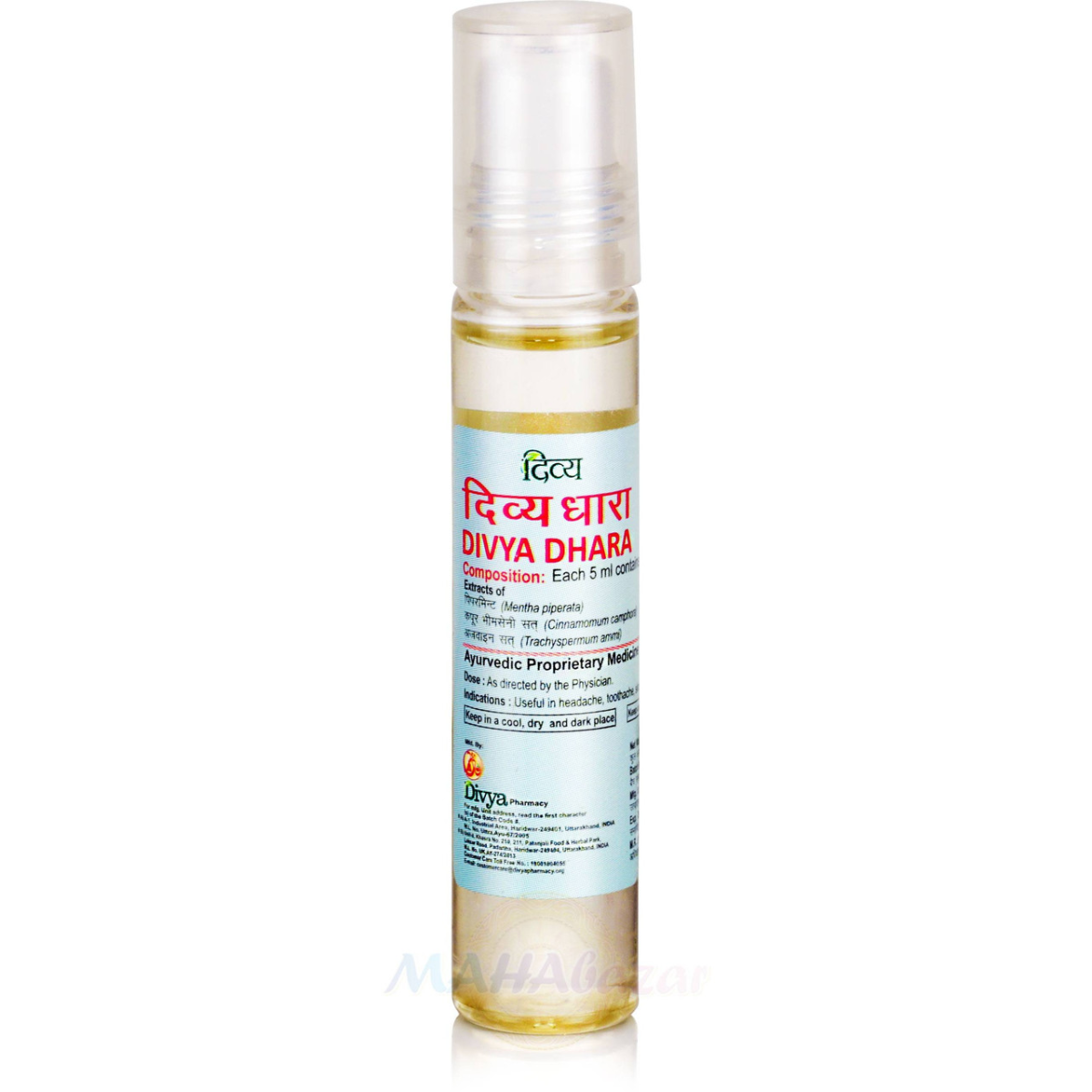 Див“я Дхара – це масляний екстракт цілющих рослин, що має виражені болезаспокійливі властивості. У вигляді засобу для інгаляцій полегшує дихання при нежиті, закладеності носа, знімає набряк його слизової оболонки, надає відхаркувальну дію, усуває напади астми та алергії. При місцевому застосуванні допомагає при забоях, надаючи місцевий охолодний та аналгетичний ефект. Препарат полегшує напади головного болю через нервову перенапругу або втому, зубний біль при запальних процесах ясен або ураження нервів, а також вушні стріляючі болі та больовий синдром при респіраторних захворюваннях. При використанні Див“я Дхара в приготуванні парових ванн для інгаляцій при захворюваннях дихальних шляхів, пом“якшує ефект на бронхи і легені, активізує процес виведення мокротиння, дасть швидке полегшення при дратівливому горлі кашлі. Допоможе при ларингіті і фарингіті, ангін, оскільки має антибактеріальні та протизапальні властивості. При масажі скронь засіб миттєве нейтралізує біль голови, охолодить і заспокоїть мозок, усуваючи стрес. Велика перевага препарату в тому, що дія його універсальна і практично миттєва. Активні інгредієнти: М“ята (Mentha). Виявляє виражений охолодний і болезаспокійливий ефект, стимулюючи циркуляцію крові, перешкоджає утворенню синців та гематом. Ефективна при зубному болю.Застосування м“яти при болях місцевого характеру через різні пошкодження, запальні процеси і нариви допоможе не тільки вгамувати «жар» ураженої ділянки, а й сприятиме зняттю стресу від больових відчуттів, заспокоїть нервову систему. Корисна для чутливої, схильної до запалень шкіри, оскільки відмінно знімає висипання, подразнення та свербіж. Завдяки високому вмісту флавоноїдів успішно полегшує симптоми закладеності носа, знімає набряк слизової оболонки при грипі та застуді. Коричник камфорний (Cinnamomum camphora). Камфора здавна славиться своїми цілющими властивостями. Це насамперед ефективний стимулюючий, протизапальний, відхаркувальний, антисептичний, аналгезуючий та протиспазматичний засіб. Найбільш цінна здатність камфори виявляється в її відновлюючому та нормалізуючому вплив на всі функції організму. Чинить судинозвужувальну дію. Використовують при захворюваннях органів дихання. Застосовують як антисептик зі зняттям місцевих подразнень. Аджван (Trachyspermum ammi). Знімає спазми, за що вважається чудовим болезаспокійливим засобом. Заспокоює нервову систему. Має виражені антисептичні властивості, які використовують у стоматології та дерматології при лікуванні запальних процесів у тканинах. Інструкція із застосування: Використовується лише зовнішньо. При головному болі наносити на лоб та віскі. При травмах і забитих місцях слід нанести невелику кількість олії локально уражену ділянку. При зубному болю завдати 2-3 краплі на хворий зуб. При нежиті змащувати шкіру під носом.При грипі та застуді нанести кілька крапель на груди та втерти. Для інгаляцій 4-5 крапель змішати з 0,5-1 л води, дихати над парою. Зберігати у прохолодному та темному місці. Склад Див“я Дхара: М“ята (Mentha) – 2.0 г, Коричник камфорний (Cinnamomum camphora) – 1.5 г, Аджван (Trachyspermum ammi) – 1.5 г.