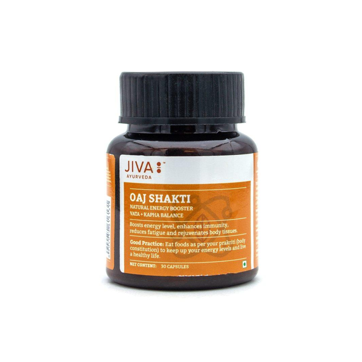 “Оадж шакті“ - аюрведичний натуральний продукт, призначений для підтримки фізичного та розумового стану здоров“я, відновлення рівня енергії та зміцнення імунної системи. Є енергетичним тоніком. Ключові компоненти капсул Oaj Shakti Каунч (mucuna pruriens) - відомий своїми тонізуючими властивостями та здатністю підвищувати рівень енергії. Шудх шиладжит (shudh shilajeet) – призначений для підтримки загального здоров“я та енергетичного рівня. Талмахана (asteracantha longifolia) — має аюрведичні властивості для підвищення імунітету та підтримки енергії. Абрак бхасма (abhrak bhasma, вапняк слюди) допомагає підтримувати загальний стан здоров“я. Шатаварі (asparagus racemosus, спаржа кистевидна) - підтримує жіноче здоров“я, підвищує енергетичний запас та зміцнює імунітет. Нагбаларт (grewia hirsutа, гревія волохата) - сприяє загальному зміцненню організму та збільшенню рівня енергії. Цфат муслі (chlorophytum borivillianum) - використовується в аюрведе як афродизіак та тонізуючий засіб. Ашваганда (withania somnifera) є адаптогеном, допомагає справлятися зі стресом і втомою. Гокшур (tribulus terrestris) — має тонізуючі властивості та здатність збільшувати енергію. Показання для застосування: астенічний синдром, зниження імунітету, стрес. Як застосовувати: 1 капс. 1 разів на день. З метою визначення точного дозування відповідно до вашого стану здоров“я призначення та застосування слід узгоджувати з фахівцем з аюрведичної медицини. Побічні дії: відсутні. Протипоказання: нестерпність окремих компонентів. Термін придатності: 3 роки від дати виготовлення.